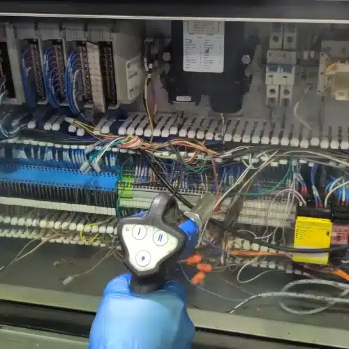 Le nettoyage cryogénique est un procédé sec et non conducteur, ce qui le rend parfaitement sûr pour le nettoyage des composants électriques sensibles. Il élimine les années d’accumulation de contaminants (graisse, huile) des : 1) Moteurs électriques, 2) Automates programmables (PLC) / Armoires de commande, 3) Ventilateurs de refroidissement.