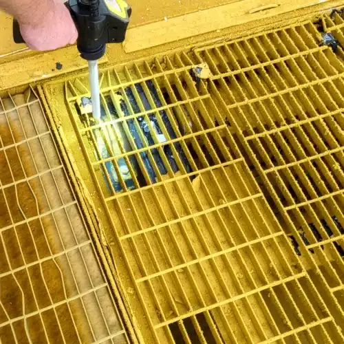 Nettoyage cryogénique pour éliminer la peinture du sol de la cabine et des grilles à courant descendant
